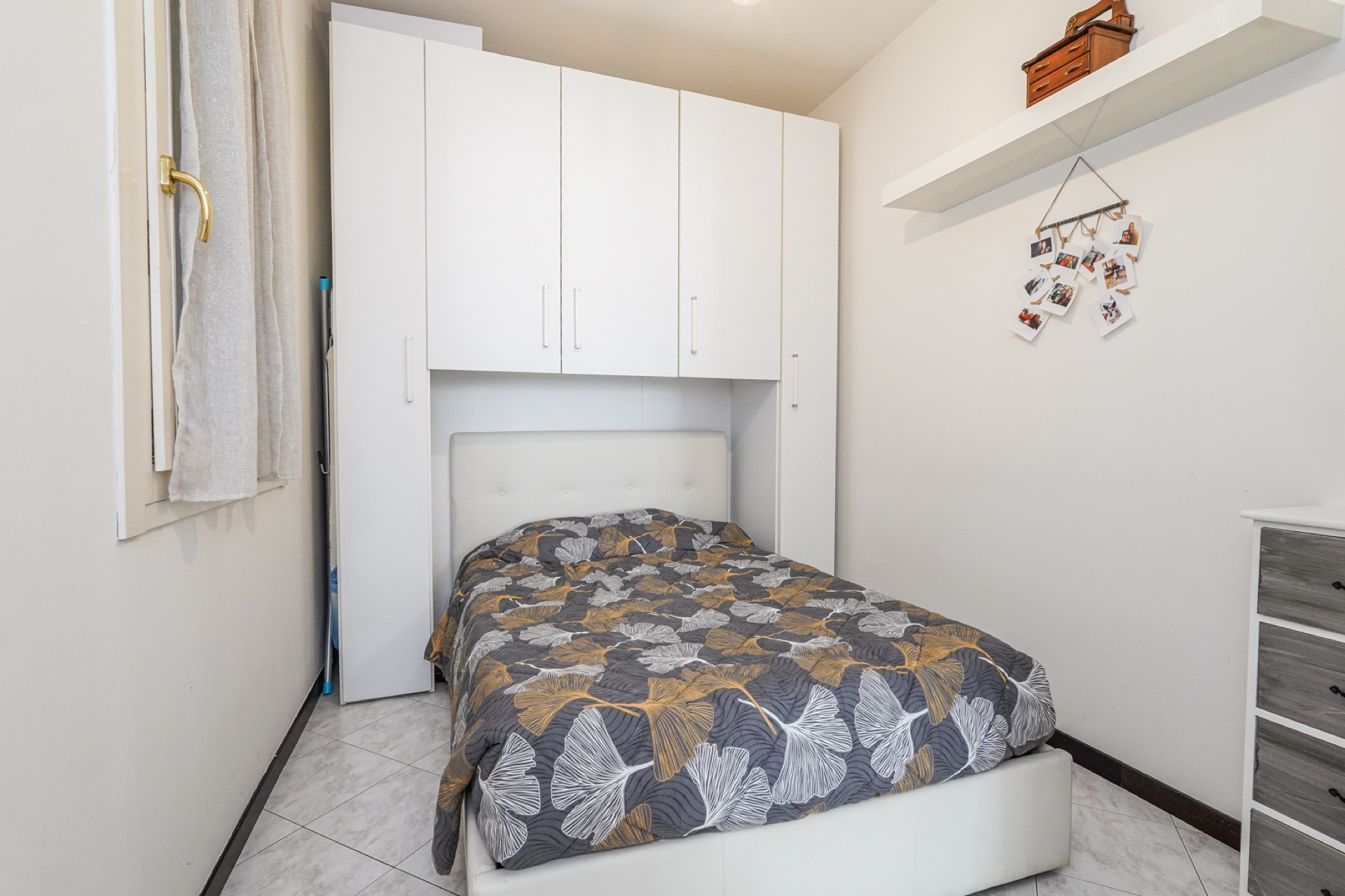 All’interno, l’appartamento offre un ampio soggiorno con angolo cottura, una camera singola e una matrimoniale, oltre a un disimpegno che conduce al bagno. Completano la proprietà una lavanderia e l’arredamento incluso nel prezzo.